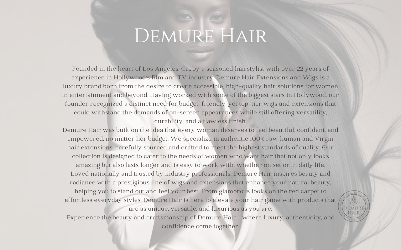 You asked for luxury, and now you have it. Introducing Demure Hair. Your source for hair extensions and wigs to meet the high end quality on budget you can afford.